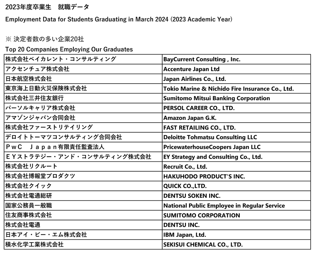 2024年度の就職先一覧