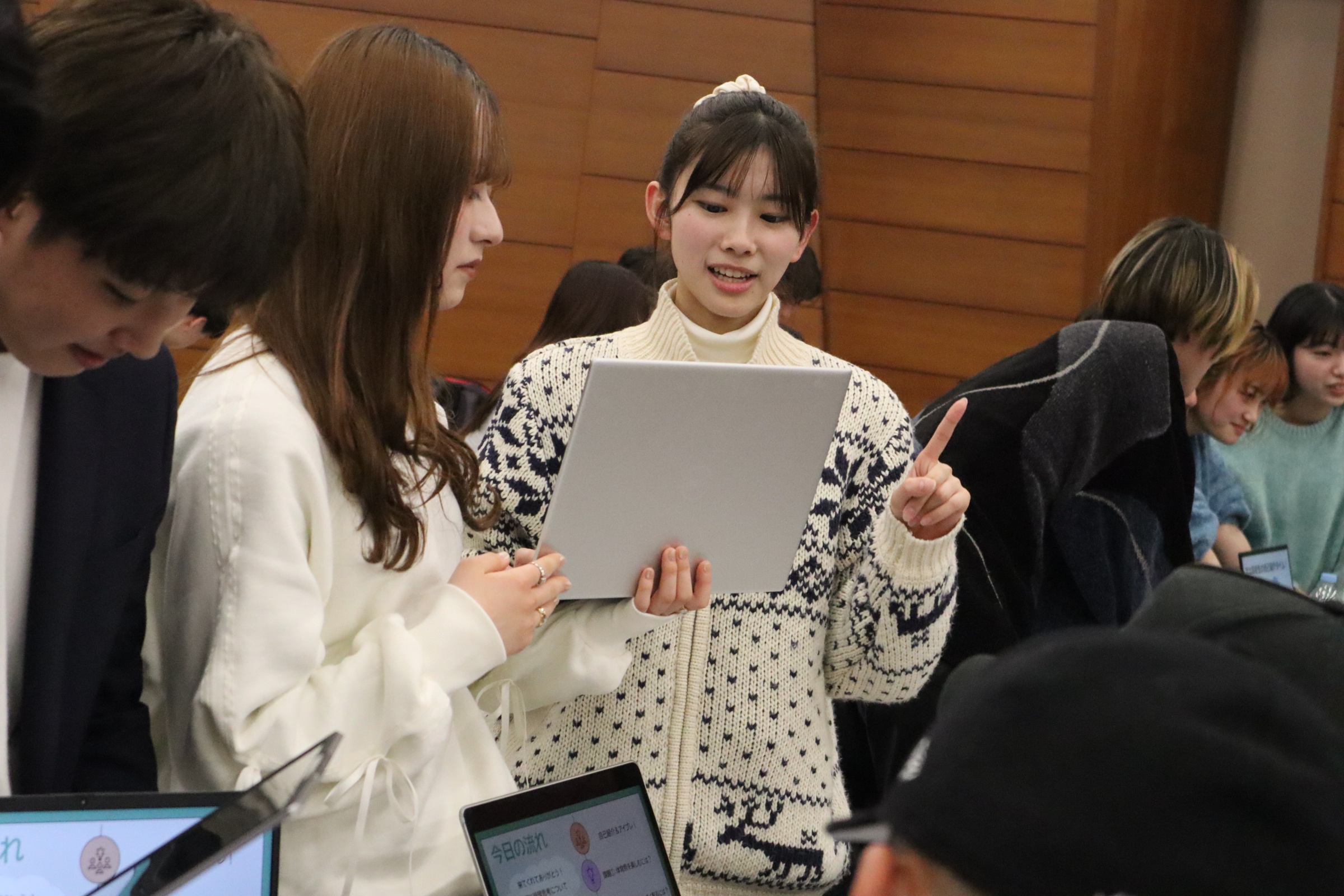 As everyone gradually relaxes, the program will introduce the Rikkyo COB learning environment and the student staff, who will serve as the event moderators.