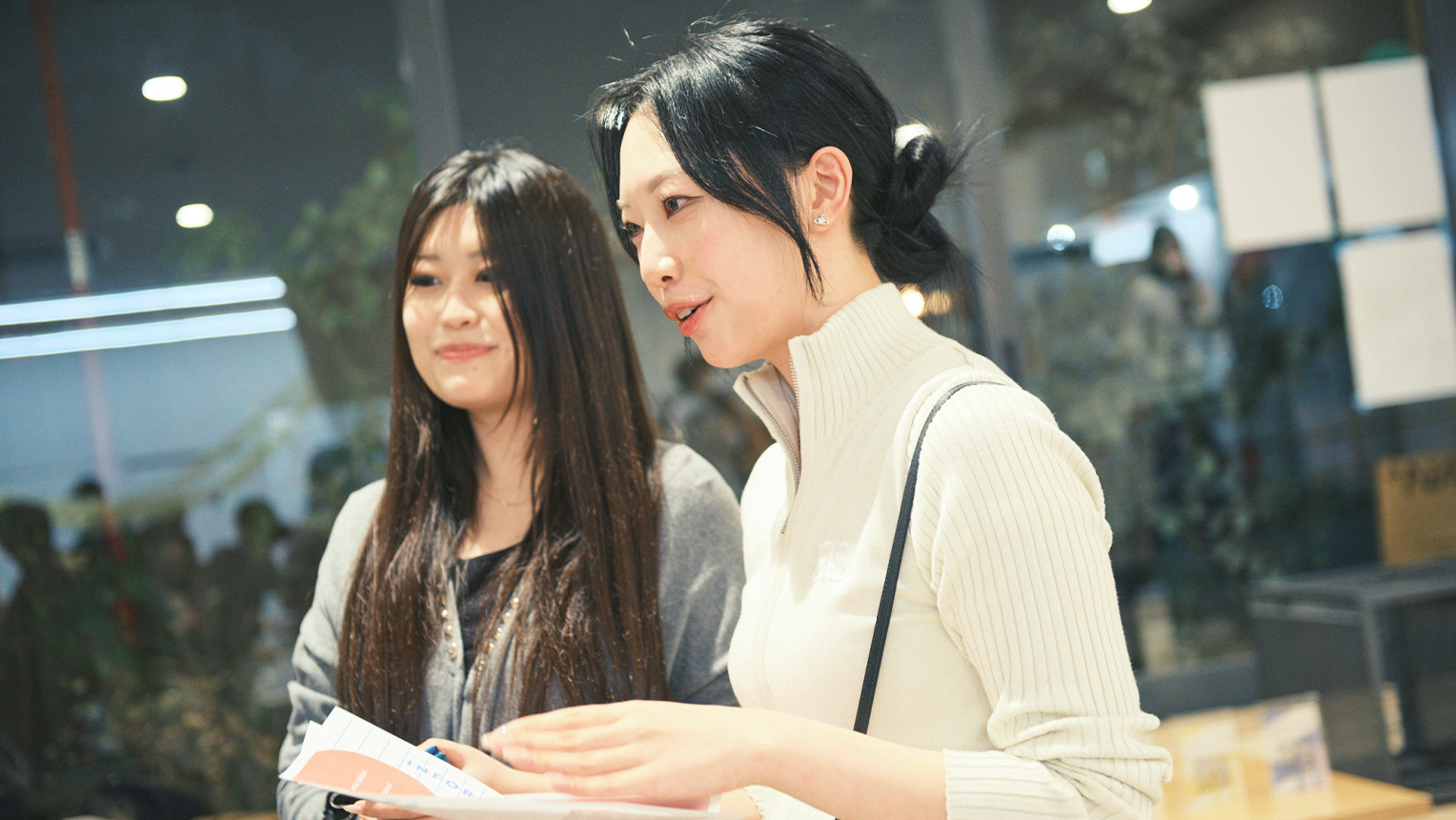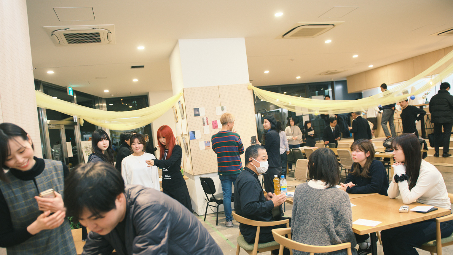 学生たちが自らの葛藤や矛盾をテーマに作品を発表する「た展」。今回は三井不動産や株式会社オカムラの社員の皆様など、社会人も出展者として参加し、学生と社会人が「アート」を通じてフラットに対話・交流する様子が描かれています。