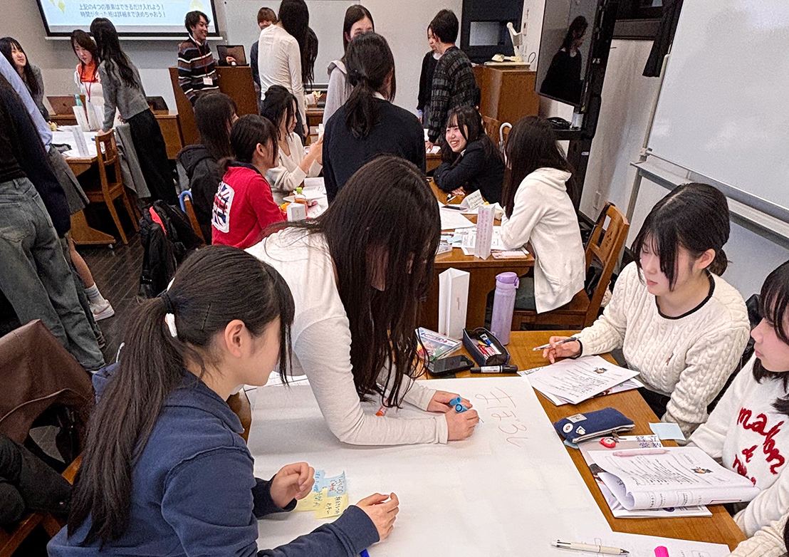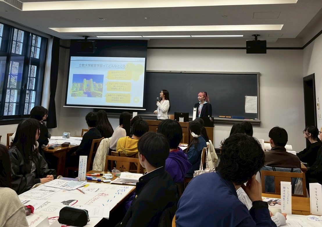 経営学部の公認学生団体である「高大連携学生プロジェクト」のスタッフが、BLP主査の舘野泰一准教授の監修のもと、アイスブレイクの題材から授業の教材を作り上げ、当日はファシリテーターとして授業を運営しました。